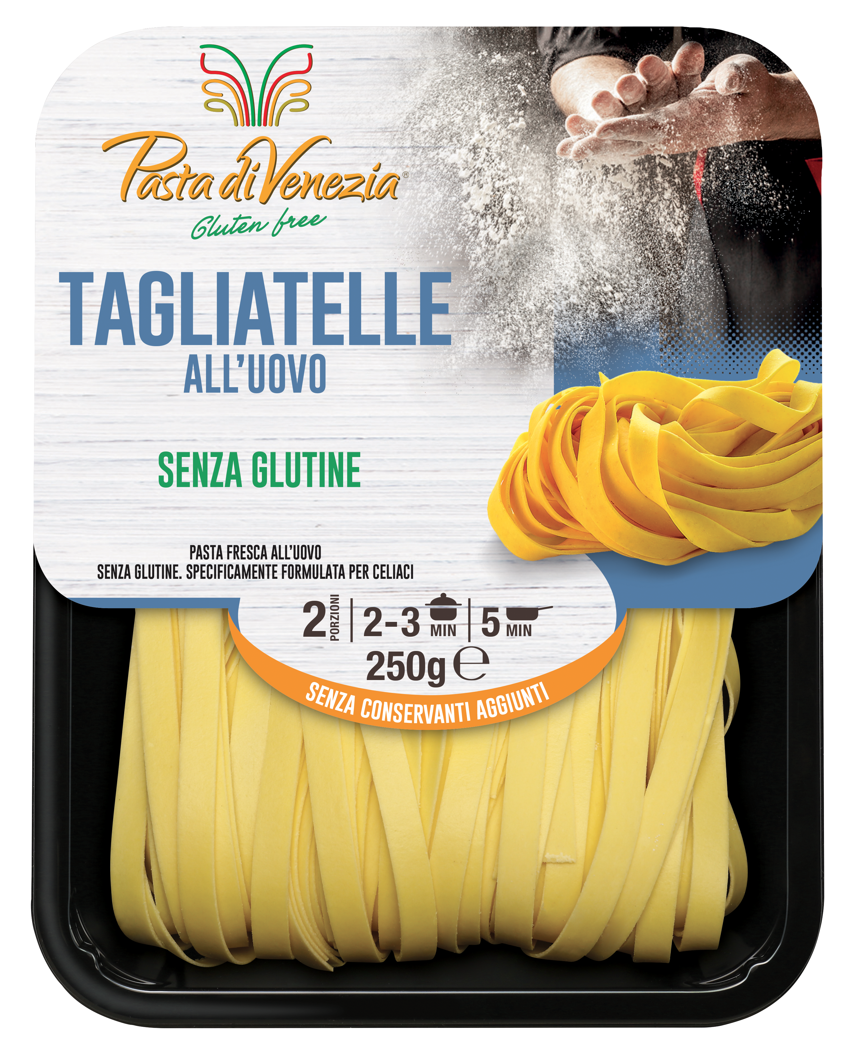 Come da tradizione emiliana, una pasta laminata per catturare ed abbinare qualsiasi condimento da avvolgere alla forchetta per esaltare il meglio della pasta fresca senza glutine.