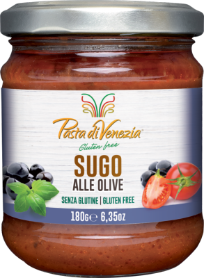 Nel vasetto di vetro del sugo alle olive Pasta di Venezia potete trovare solo succoso pomodoro italiano e tanti pezzi di olive nere, per impreziosire ogni piatto, dall'aperitivo allo stuzzichino! Provalo con dei crostini.