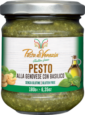 olio extra vergine di oliva 49%, anacardi 32%, basilico Genovese DOP 12%, olio di semi di girasole, sale, sciroppo di glucosio, formaggio Pecorino Romano DOP 0,8% (latte di pecora, sale, caglio), pinoli 0,13%, noci, antiossidante: acido ascorbico, aglio.