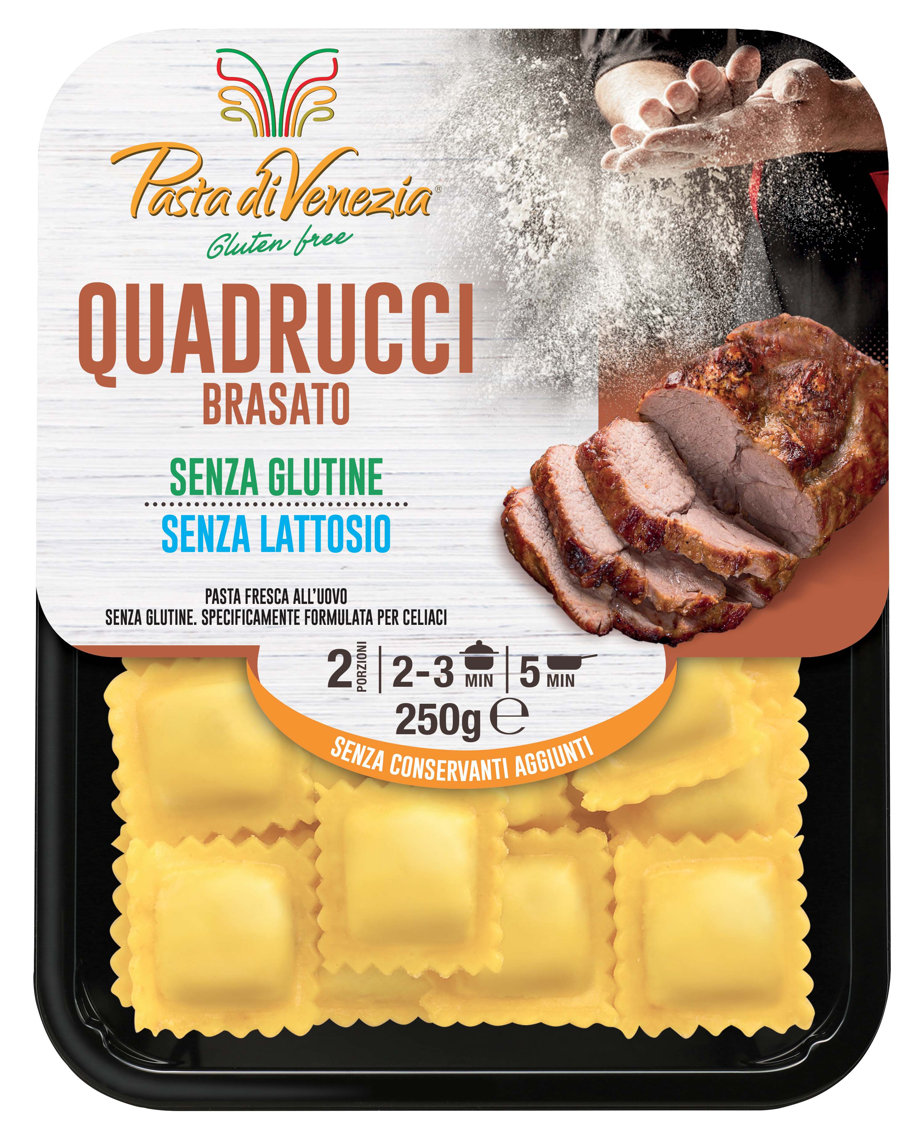 Prova tutto il gusto e il sapore del brasato, la speciale e gustosa carne tipica del nord-Italia. I quadrucci al brasato sono gluten free e lactose free, pensati appositamente per chi non può mangiare prodotti con glutine o lattosio, come tutta la nostra linea di pasta ripiena e non solo!
