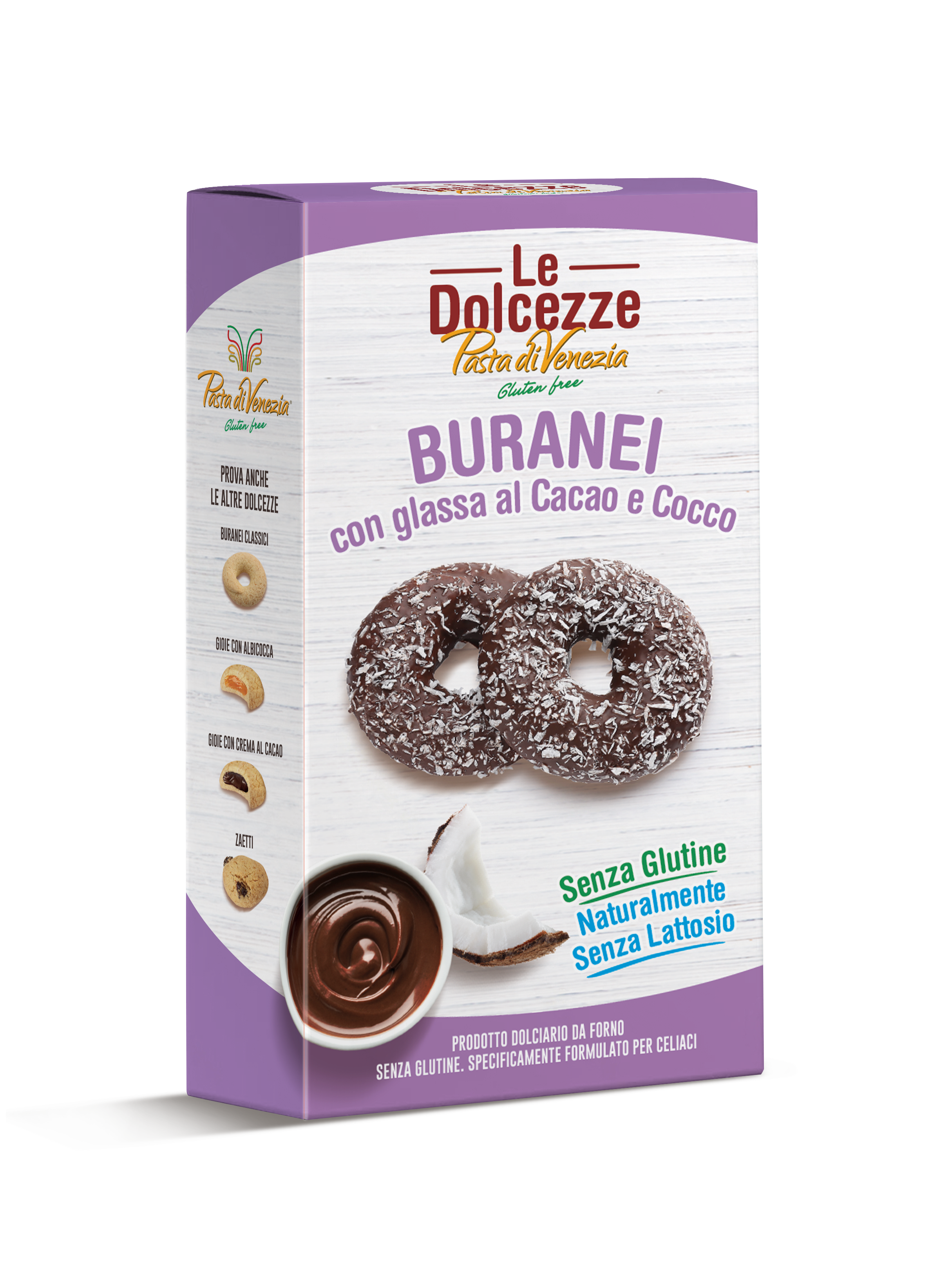 Copertura: glassa al cacao 3% sul totale del prodotto (zucchero, grassi vegetali totalmente idrogenati (palmisti), cacao magro in polvere 16%, emulsionante: lecitina di girasole; vanillina), cocco 1,5% sul totale del prodotto.