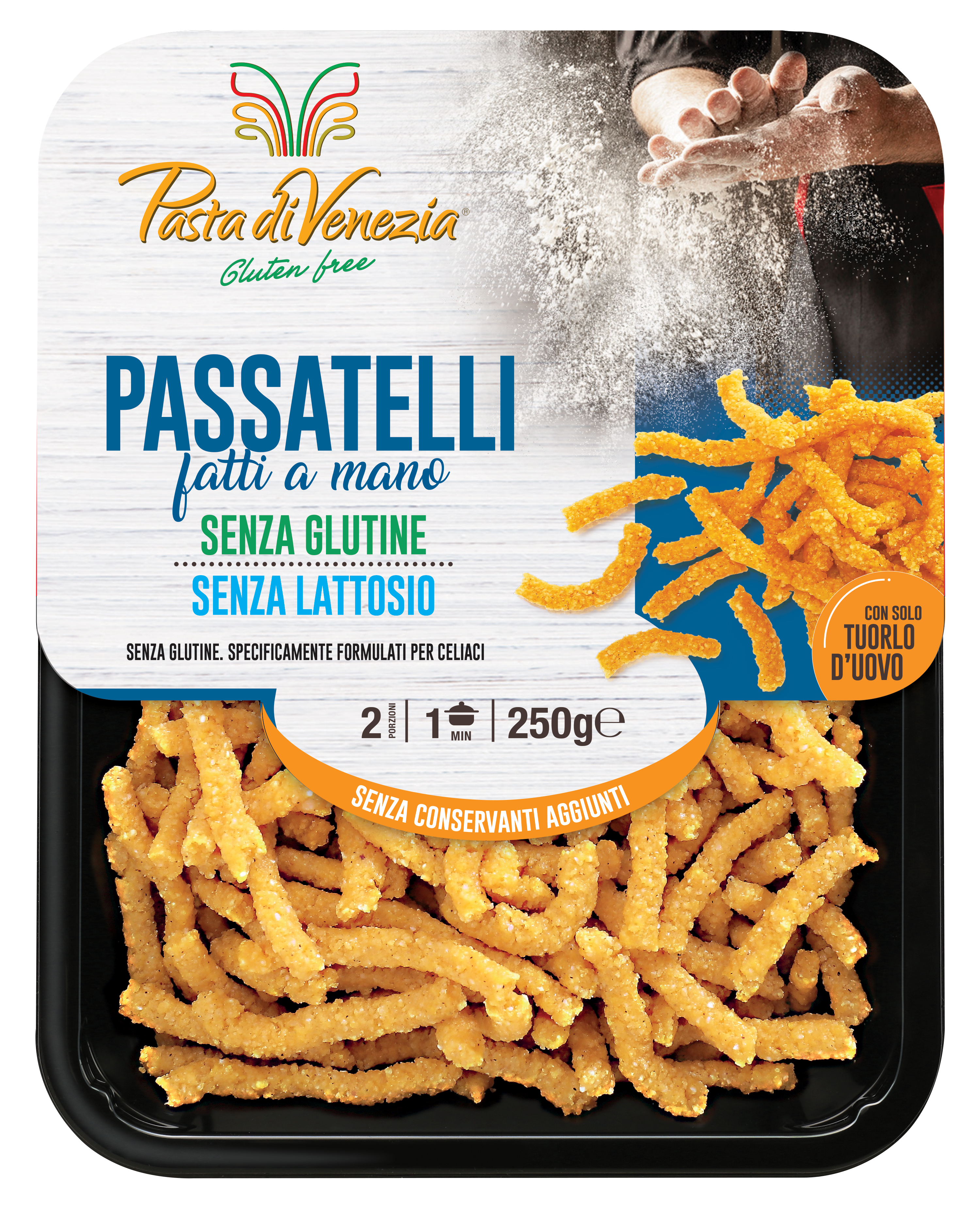 Tuorlo d’uovo 34,6%, semilavorato senza glutine (farina di mais, olio di semi di girasole, zucchero caramellizzato), formaggio Grana Padano DOP (latte, sale, caglio, conservante: lisozima da uovo), formaggio Gran Mondoro (latte, sale, enzima coagulante microbico), sale, limone, noce moscata, pepe.